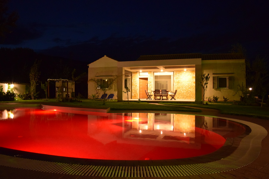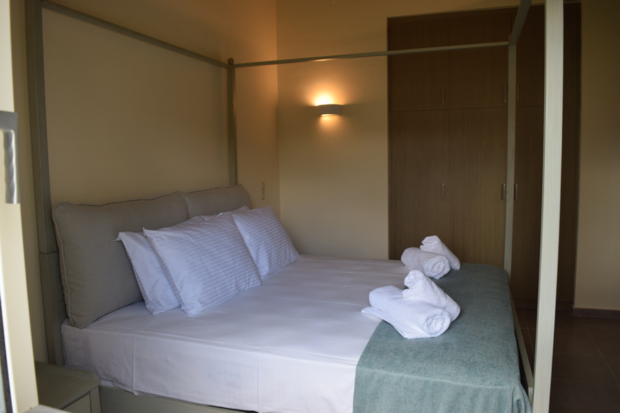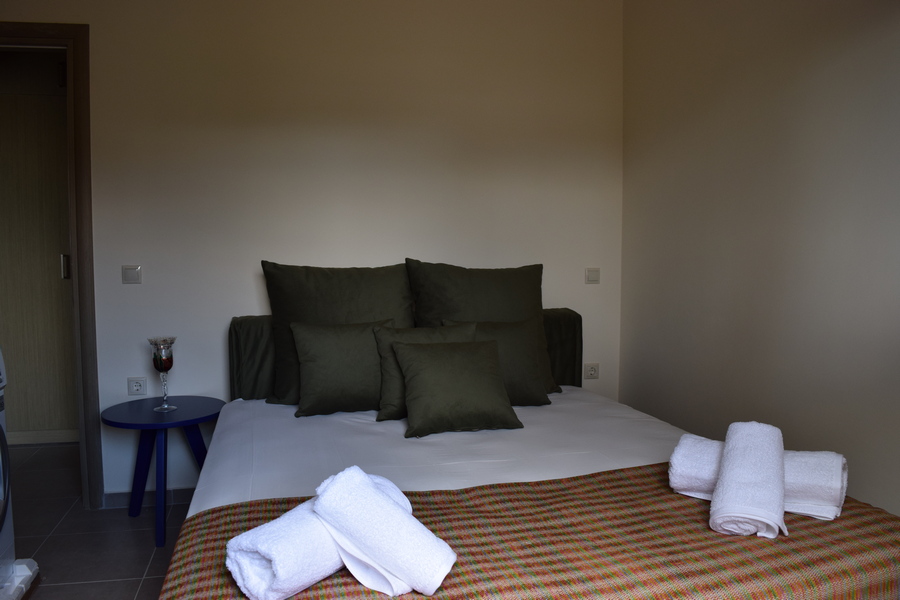 Villa Erotas can accommodate up to 7 people. It consists of two big bedrooms, with en-suite bathrooms, as well as one smaller bedroom. The villa offers a fully equipped kitchen, a dining room, an extra bathroom, as well as a spacious and modern decorated living room with a sofa that can easily be turned into a comfortable single bed.